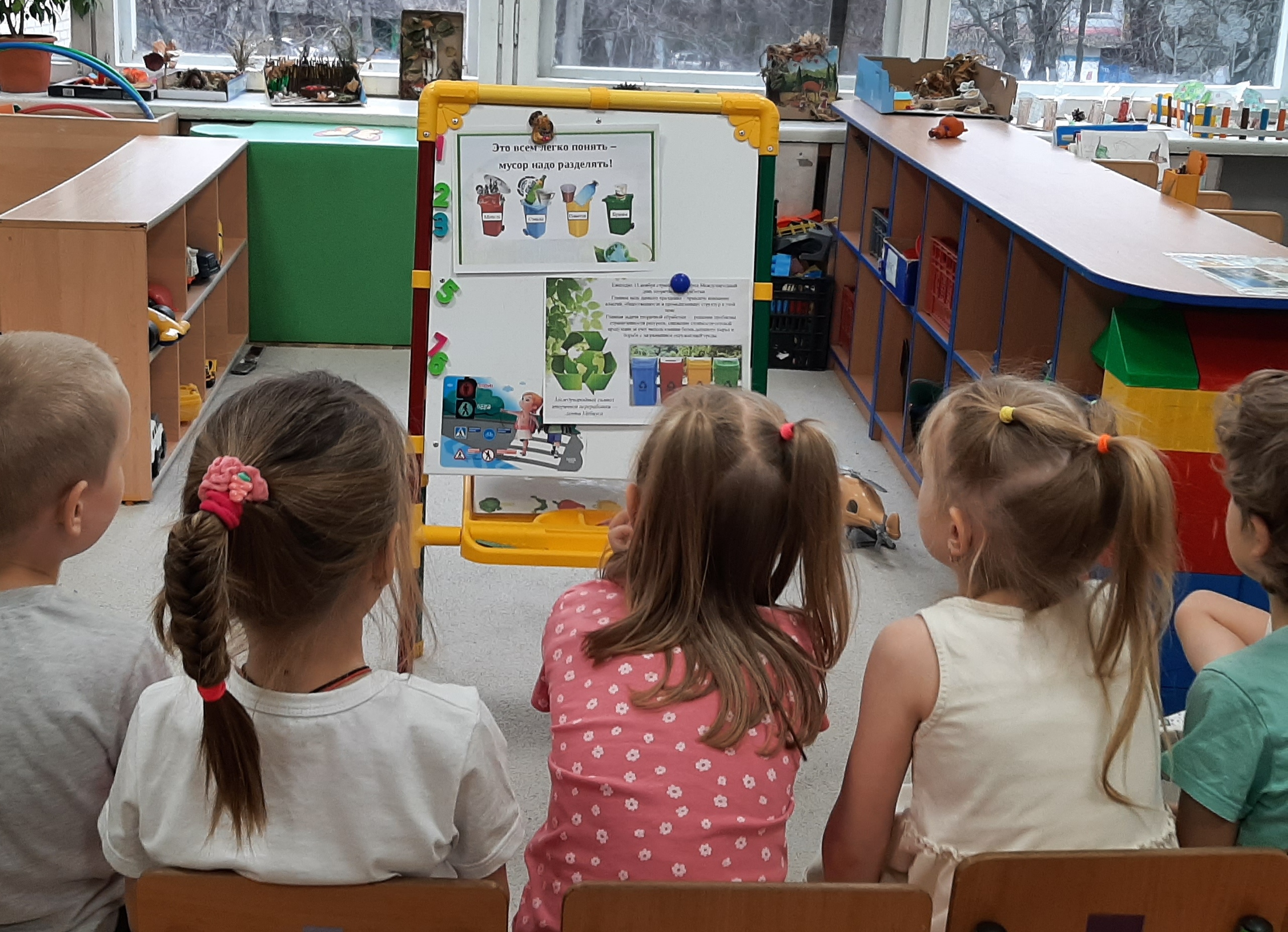 Провели беседы «Откуда берётся мусор», поиграли в дидактические игры «Сортировка мусора». Ребята узнали, что такие предметы как стекло, пластик, бумага — можно использовать вторично. Дошколята посмотрели экологический мультфильм «Жил был мусор» и сделали вывод, что разделять отходы - это очень важно.