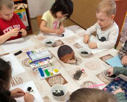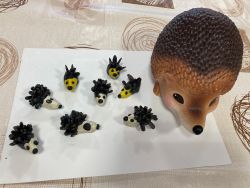 Рисовали портрет ежа, делали аппликации. Вылепили из пластилина туловище, вытянули мордочку. Затем сделали ему глазки и носик, а колючки «смастерили» из семечек. Такая техника является хорошим способом для передачи фактуры образа, развития мелкой моторики пальцев рук. Так у наших ребят появились новые друзья!