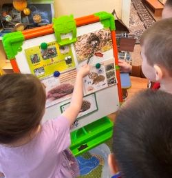 Также дети рассматривали картины «Ежи» из серии «Дикие животные», «Ежиха с ежатами», рассматривали иллюстрации, книги, отгадывали загадки. Познакомились с рассказами: Е. Чарушин «Ёж», В Бианки «Лесной колобок – колючий ёж». Решали проблемную ситуацию «Ёж заблудился в лесу».